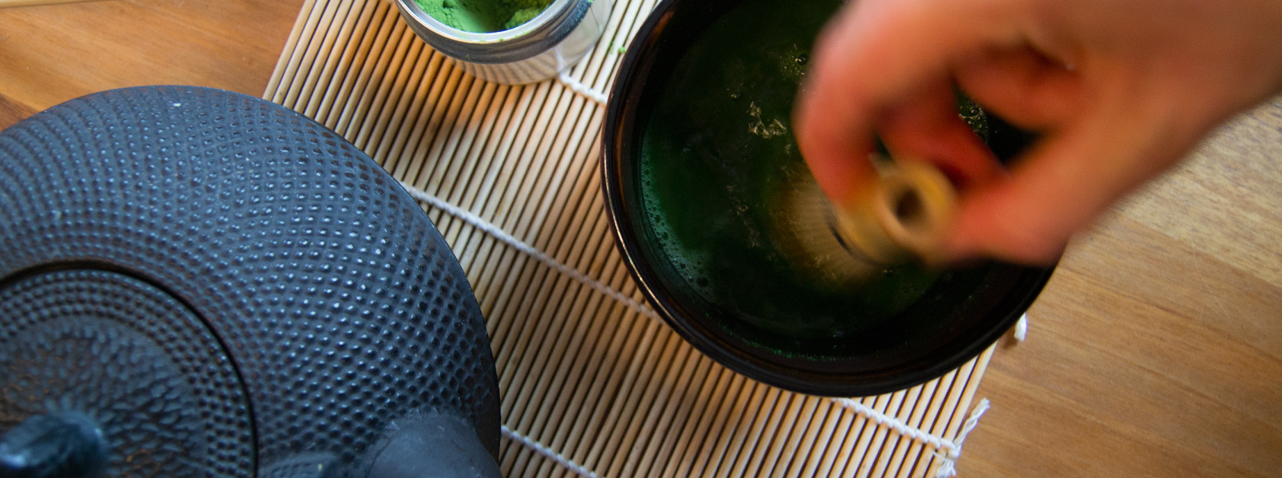 Matcha wird in aller Ruhe und in kleinen Schlücken relativ schnell getrunken. Wir schliessen dabei die Augen und lassen und vom feinen Duft und der angenehmen Wirkung in einen meditativen Zustand tragen!